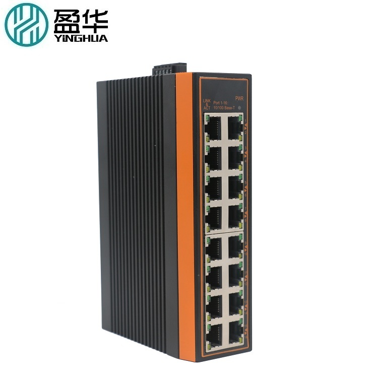 YHS1016-16FE-C-DC是我公司绿色工业以太网系列中的百兆小端口交换机,供16个百 兆以太网电接口,即插即用,16电口满载功率小于4瓦。产品达到EMC工业4级的防护性能, 能有效地抵抗静电、雷击、脉冲的干扰;波纹式高强度铝型材外壳、IP40等级、低功耗设计 、抗震的导轨安装,能工作于-40°C - 85°C 的恶劣环境。该系列产品特别适用于智能交通 、能源、电力、安防等严酷工业场合。
