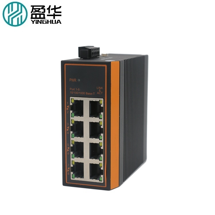 YHS1108-8GE-C-DC是我公司工业以太网系列中的千兆小端口交换机,供8个千兆以太网电 接口,即插即用,满载功率小于4瓦。产品达到EMC工业4级的防护性能,能有效地抵抗静电、雷 击、脉冲的干扰;波纹式高强度铝型材外壳、IP40等级、低功耗设计、抗震的导轨安装,能工 作于-40°C - 85°C 的恶劣环境。该系列产品特别适用于智能交通、能源、电力、安防等严酷工业场合。